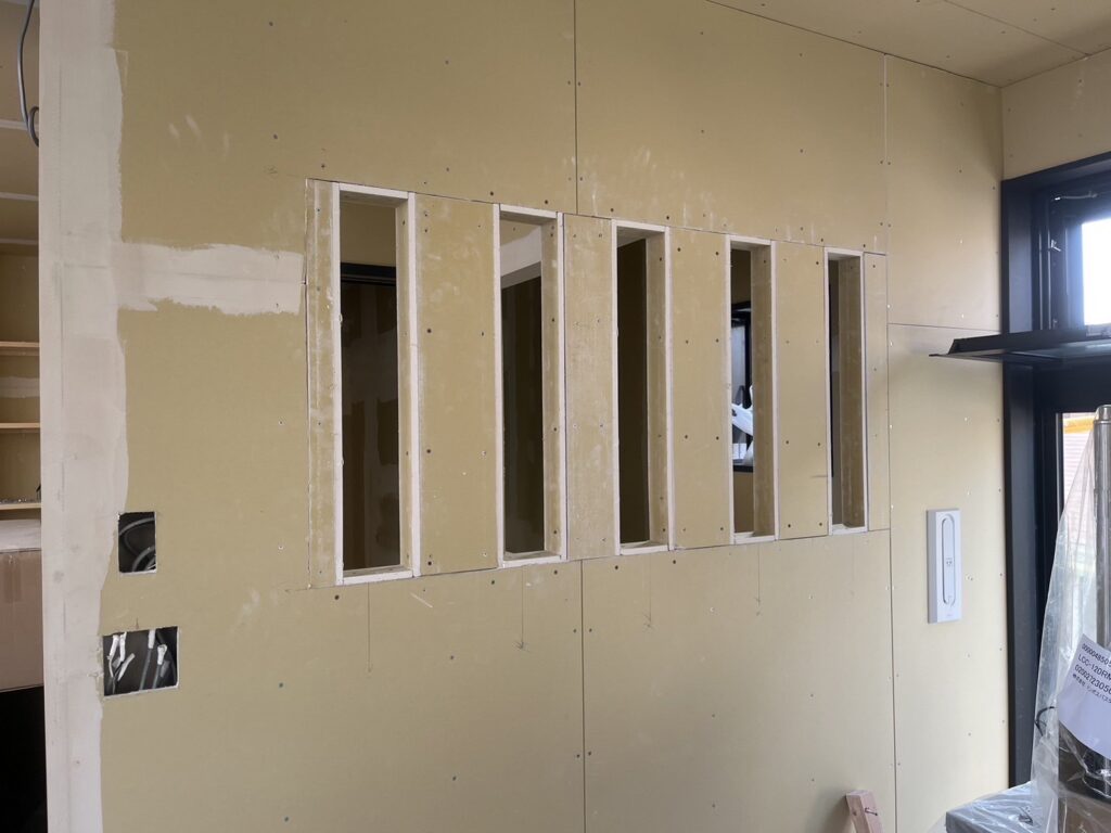 スリットは、表裏合わせて10ヶ所石膏ボードをくり抜かないといけなく、1番時間がかかりました。